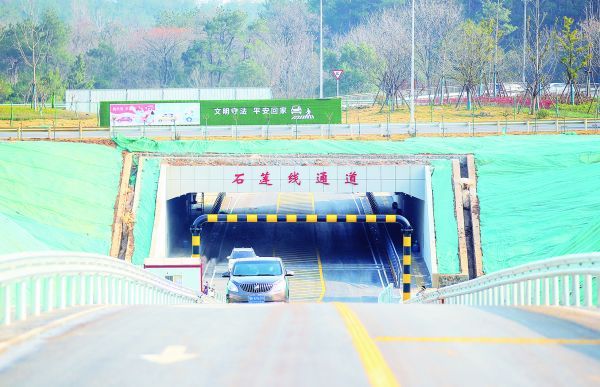 12月21日,车辆正从石莲线下穿罗汉山隧道敞口段通过。石莲线下穿罗汉山隧道敞口段通道及道路改线工程东起现状航空路,西接现状石莲线。该段建成通车将让石莲线沿线居民出行更加便捷。(记者 郑波 摄)