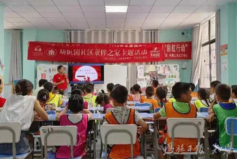 在社区“童伴之家”,社工们陪伴孩子开展活动。