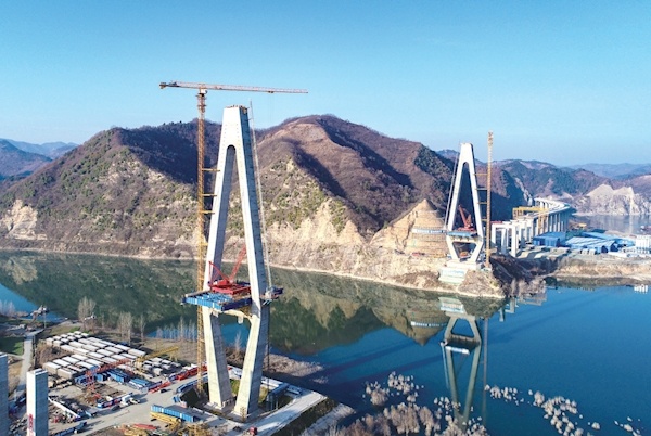 12月25日,十巫北高速(十巫高速郧鲍段)控制性工程——汉江特大桥首对斜拉索顺利安装到位。