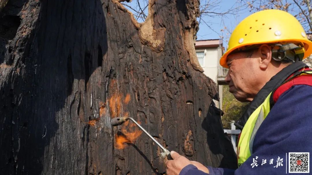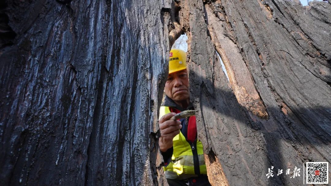 12月26日,园林和林业部门采用火疗、刷桐油等方式尽全力保护它