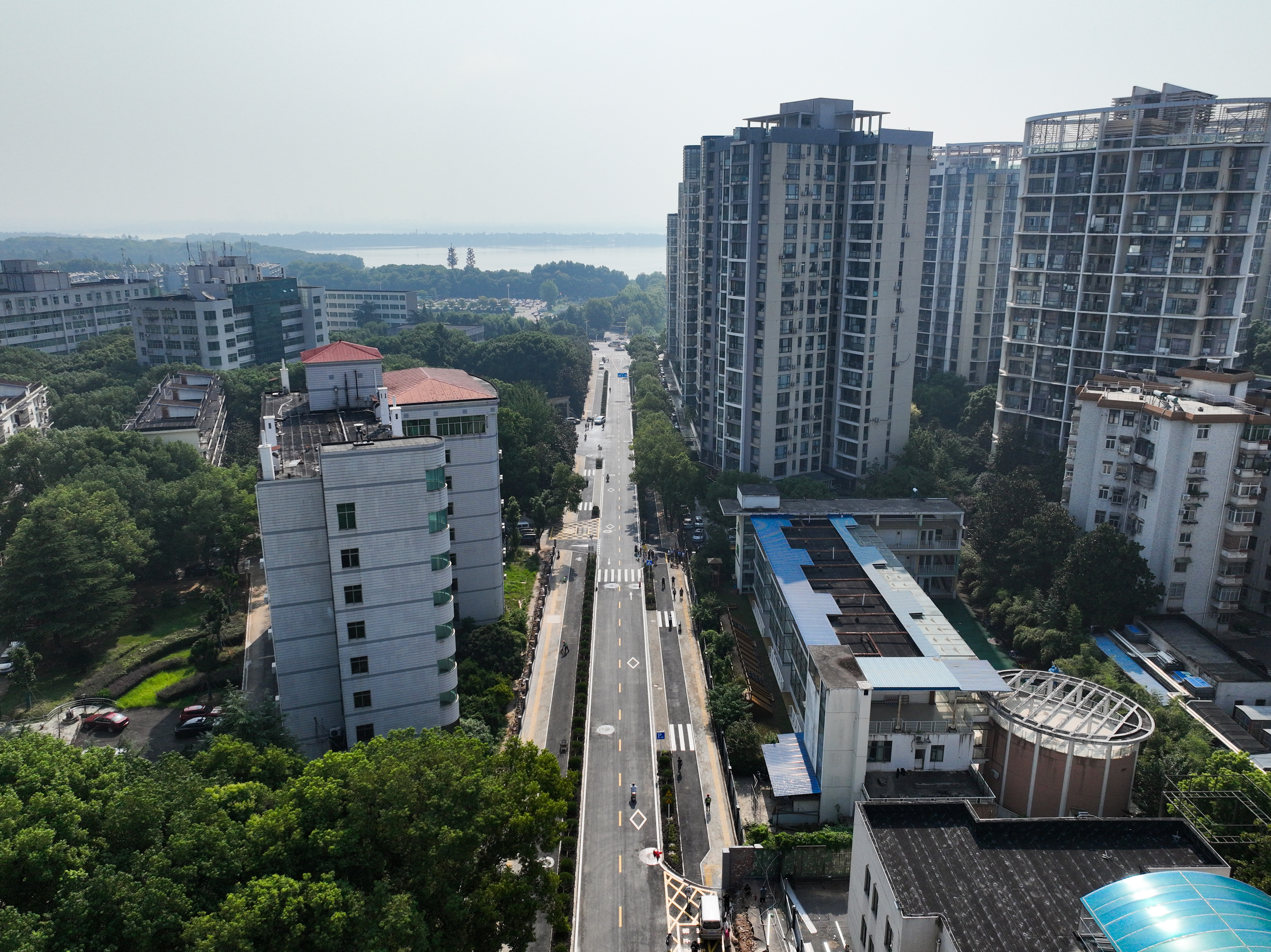 去年8月31日,梨园片区的一条断头路终于通了。杨园南路(华电小路—二环线)建成通车后,梨园街片区居民可通过杨园南路步行或骑行直接通往东湖绿道主入口(湖光序曲驿站),减少绕行约2公里,缓解徐东大街和梨园转盘交通拥堵问题。