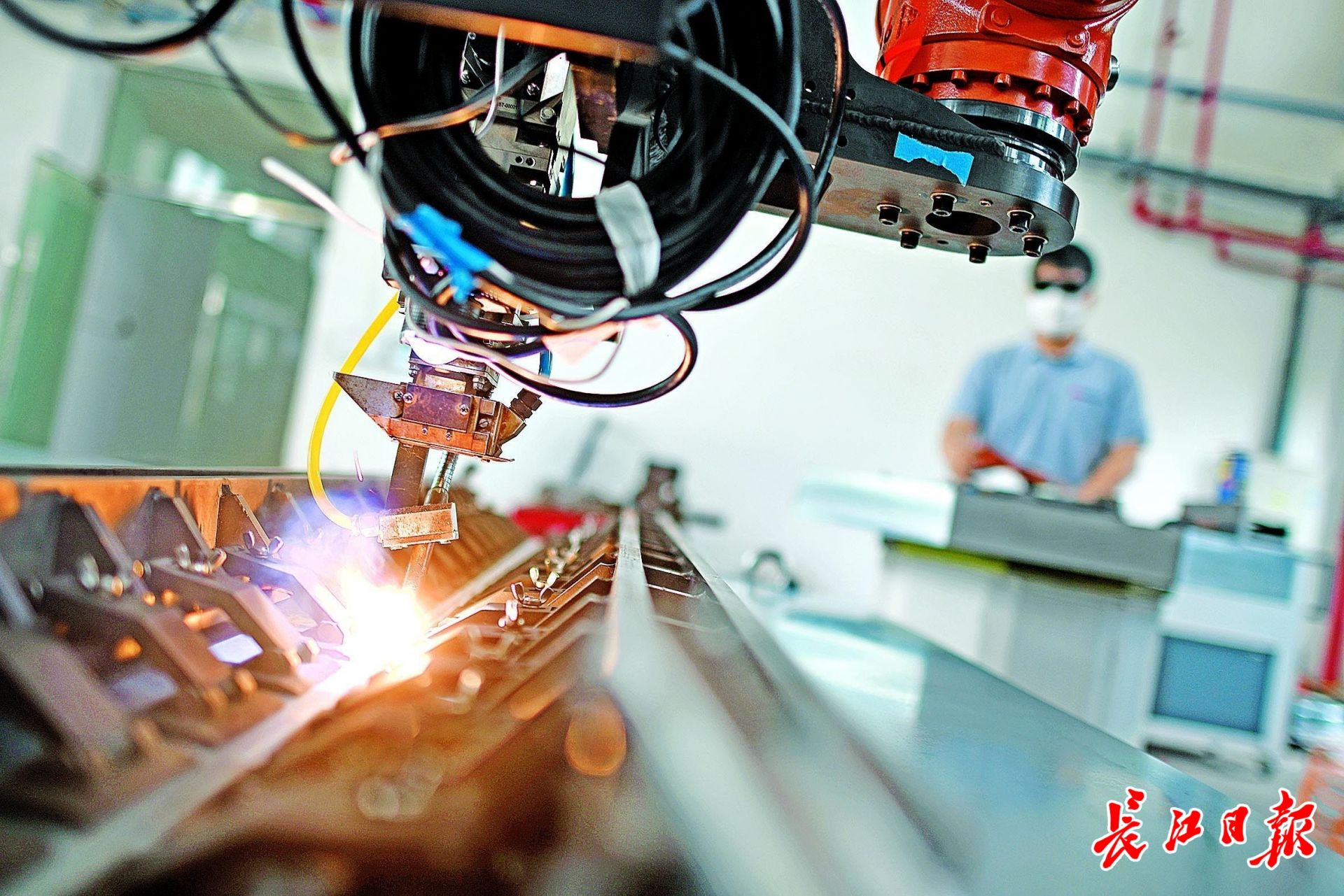 华工激光中试平台激光先进制造技术湖北省重点实验室,研发人员正在进行激光自熔焊,用于薄板间的拼焊。 长江日报记者周超 摄