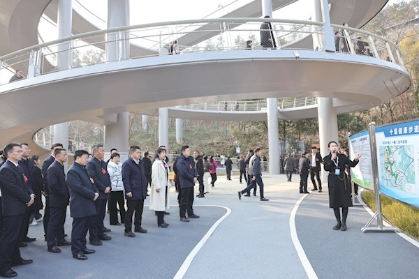 昨日上午,参加十堰市六届人大三次会议、政协十堰市六届三次会议的代表委员们来到十堰健康步道,亲身体验、全面了解步道的建设运营情况。代表委员们一路走、一路拍、一路赞,纷纷表示健康步道进一步提升了十堰城市品位,是2023年我市为群众办的一件重要实事。图/记者 张建波