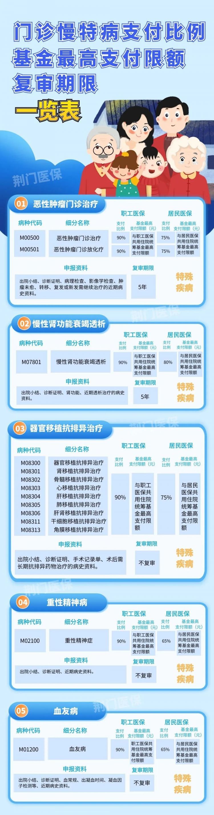 (二)按自然年度(1月1日至12月31日)设置门诊慢特病统筹基金最高支付限额,具体见表格。