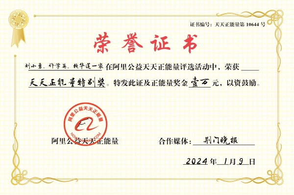 厚道荆门人,大爱荆门城。荆门晚报5日以《厚道荆门人,情暖异乡客》为题报道荆门高新区·掇刀区掇刀石街道十里牌社区的好房东刘小勇一家的事迹后,引发社会好评,并引起了阿里公益的关注。昨日,荆门晚报联合阿里公益天天正能量为刘小勇一家颁奖,发放1万元正能量奖金。