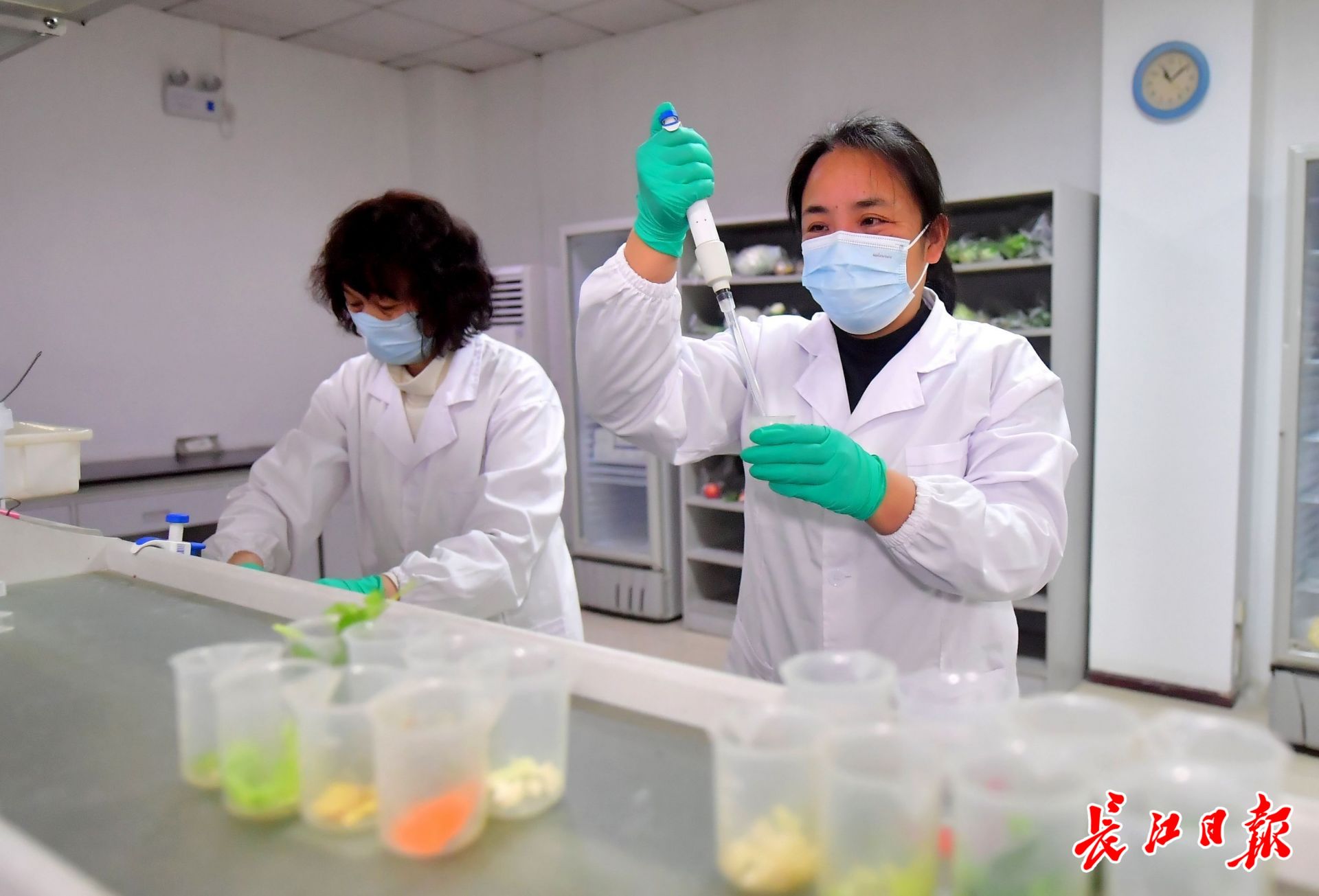 检测中心内,检测员加入缓冲液形成待测样品。长江日报记者刘斌 摄