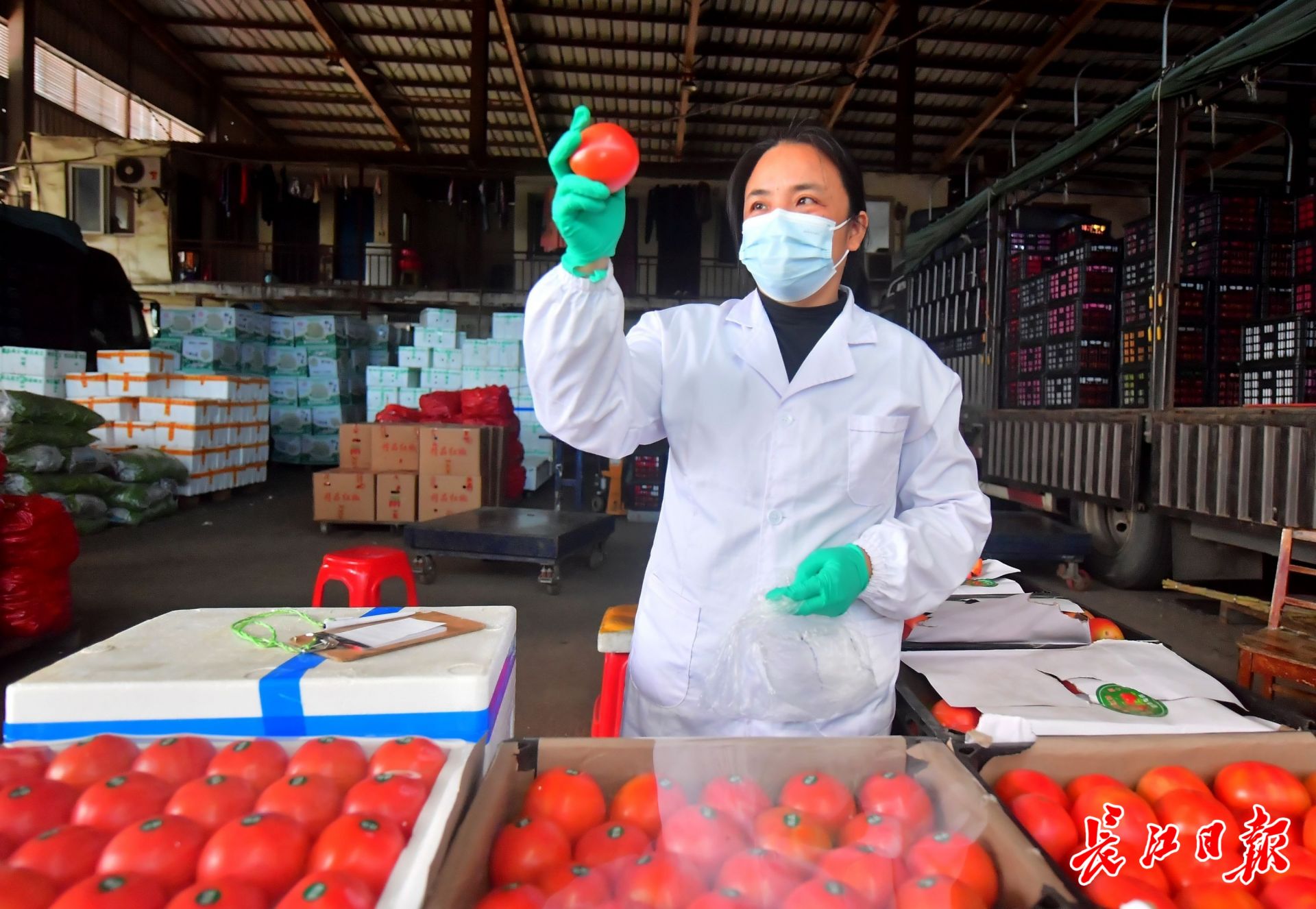 10时许,白沙洲大市场检测中心抽样员熊丽娟拿着抽样袋,走进湖北省星鹏程供应链有限公司进行蔬菜取样。只见她轻轻撕开蔬果包装,左手拿起一棵平包菜,快速打量一番后装入样品袋,整个过程不过半分钟。