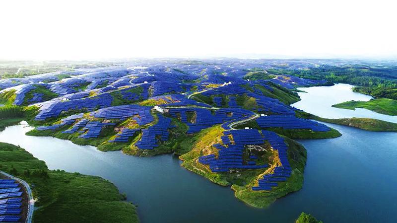 光伏电站将太阳光转换成绿色清洁能源,提升了周边村民收入,有力助推乡村振兴。