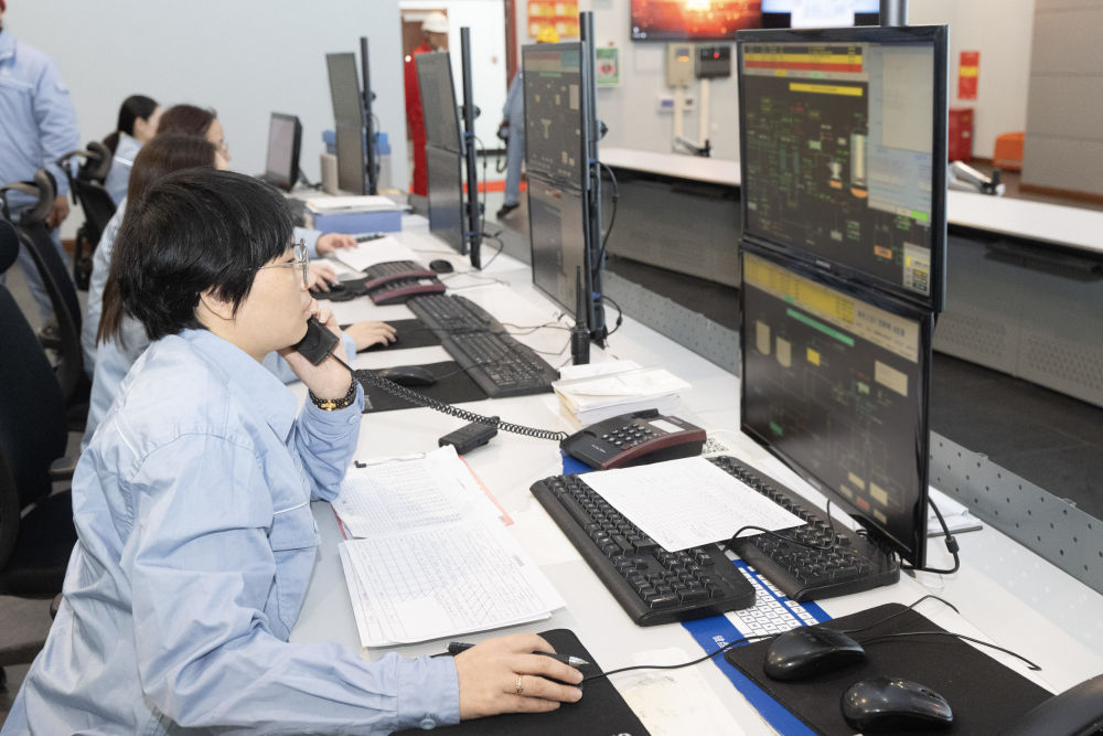 在中石化江汉盐化工湖北有限公司中控室,工作人员对设备运行状况进行监控。新华社记者肖艺九 摄
