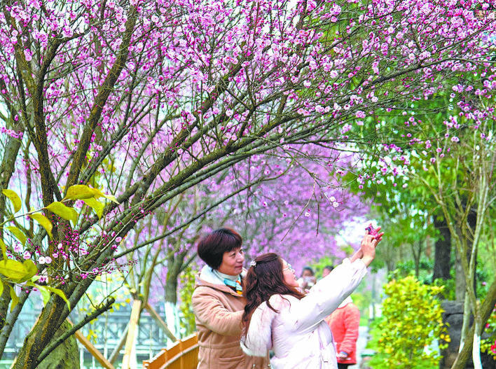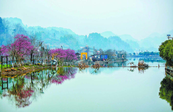 临近大寒节气,洞下槽村龙赶湖旁的梅花绽放,朵朵梅花傲立枝头,与特色民居、湖水相映成景,构成了一幅宁静雅致的和美乡村画卷。(谭 华 )