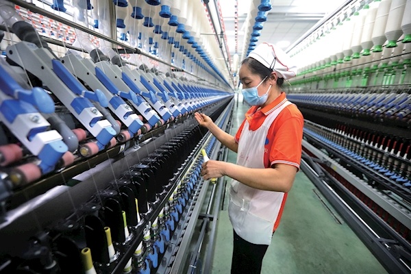 1月14日,在房县纺织工业产业园恒达纺织有限公司车间,工人正加紧生产高端紧密纺纱线。新年伊始,房县恒达纺织、弘耀袜业、卓琳制袜、奇伟服饰、瑞泰针纺、雨田防护用品等30多家规模型棉纺企业,加班加点赶制高端紧密纺纱线、棉袜、棉服等产品订单,开足马力冲刺“开门红”。特约记者张启龙通讯员余杉摄
