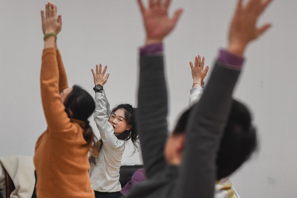 2023年12月13日,在武汉市青山区青少年宫,学员在学习中国舞。