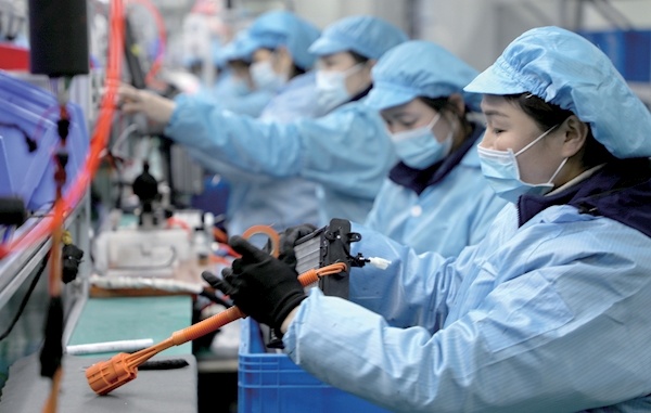 1月15日,在位于十堰经济技术开发区的湖北易倍思汽车电子装置有限公司生产车间里,工人正在新能源汽车 PTC加热器生产线上作业。据了解,目前该公司新能源汽车 PTC加热器订单已排产到2月底,按照主机厂2024年前两季度供货需求,该公司一季度预计可实现销售1500万元,同比增长40%。记者潘世新特约记者刘爱理摄