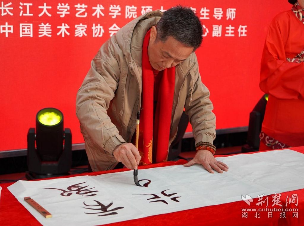 除了现场推出的集邮珍品,更让众人大饱眼福的是,国家一级美术师、荆州市美术家协会主席郑启雄以楚简书法现场为荆州邮政题字一幅;中国首届刺绣艺术家、湖北省级非遗汉绣代表性传承人张先松将剪纸艺术与中华传统龙文化的完美结合,现场展示剪龙技艺。