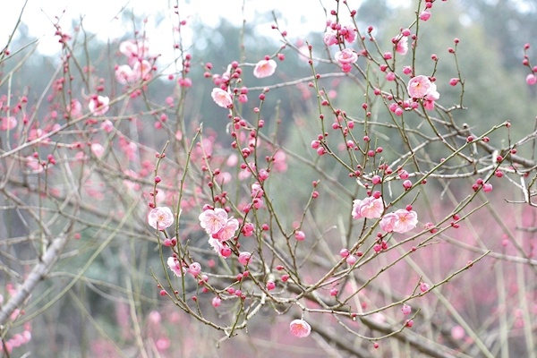 1月20日,正逢大寒节气,四方山植物园内的梅花悄然绽放,迎来最佳观赏期。200余株红梅、蜡梅迎风怒放,远远望去,宫粉、朱砂、纯白……颜色各异的梅花在一片冬色中尽显妖娆,为寒冷的冬日增添了一抹靓丽的色彩,吸引不少游客“打卡”拍照。图/记者 徐国文 特约记者 梁彦明