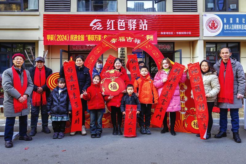 “来,女儿往里靠一靠,妈妈笑一下!”“老师,老师,给我家也写一副!”……1月23日,随州市曾都区南郊街道朱家湾社区红色驿站前人头攒动、热闹非凡。民进曾都支部按照“春联万家·向‘新’而行”活动部署,组织多名书法摄影艺术家在这里为群众免费书写春联、拍摄新春全家福。一句句祝福饱含真情跃然纸上,一张张笑脸在镜头下定格为幸福的瞬间,现场一派祥和喜庆的新春氛围。 (随州日报全媒记者李文军、通讯员韩起璞摄)
