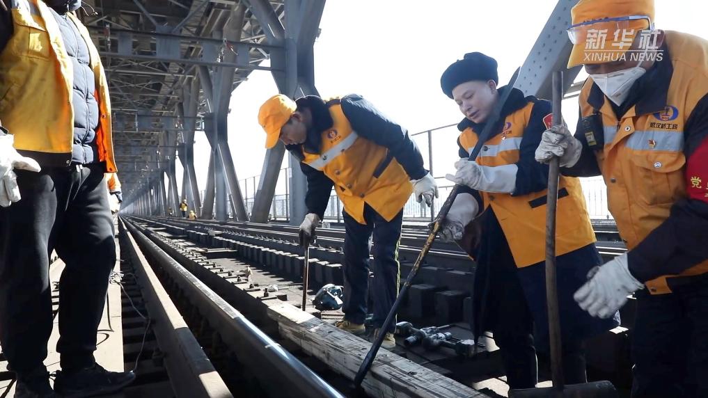 寒风凛冽的武汉长江大桥上,人声、敲打声、切割声此起彼伏。临近春运,这座有着“万里长江第一桥”美誉的公铁两用桥,将迎来又一次交通“大考”。