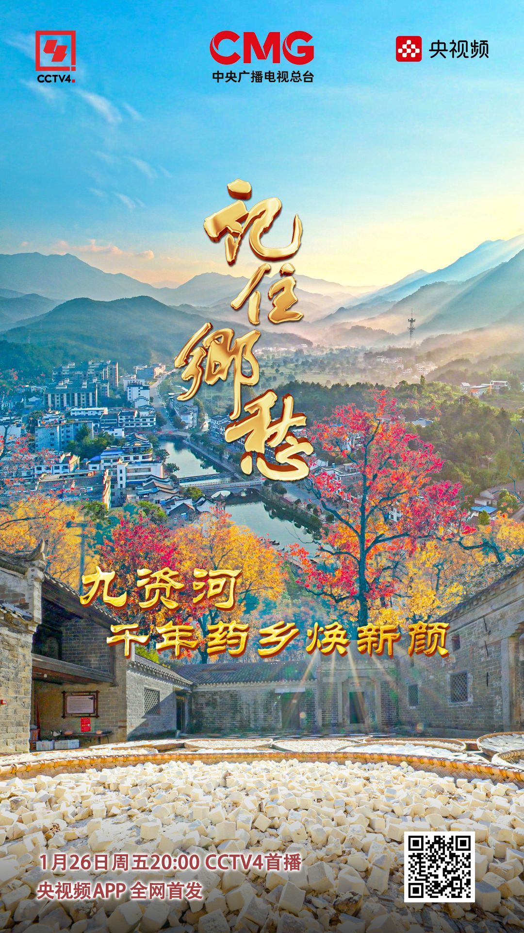 由中央广播电视总台华语环球节目中心、中共湖北省委宣传部指导,湖北广播电视台纪录片部承制的4K超高清纪录片《记住乡愁》第十季之《九资河——千年药乡焕新颜》在1月26日20:00亮相CCTV-4中文国际频道,敬请期待。