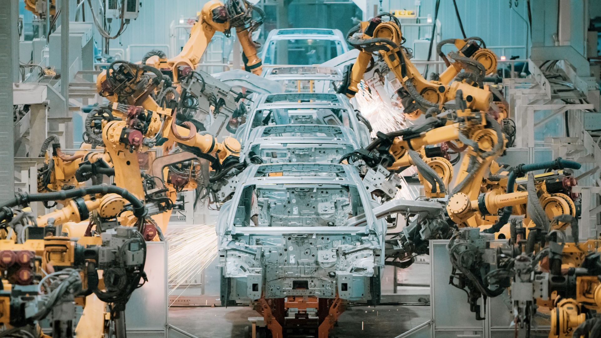 岚图汽车工厂里的智能制造场景。