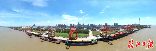 集装箱整齐有序排列,林立的门机拔地而起,各色船只鸣笛起航,自长江驶向多个国家和地区,这是武汉港常见的繁忙场景。数据显示,2023年,武汉港集装箱吞吐量279万标箱,位居长江中上游港口首位。