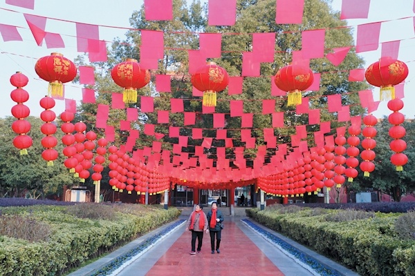 春节将至,1月29日,记者在市人民公园看到,近百盏红灯笼高高挂起,营造出喜庆祥和的节日氛围,吸引众多市民来此赏灯游玩。据悉,我市陆续在城市主次干道、广场游园和交通枢纽处悬挂灯笼、摆放鲜花,营造浓浓的年味。记者全正摄
