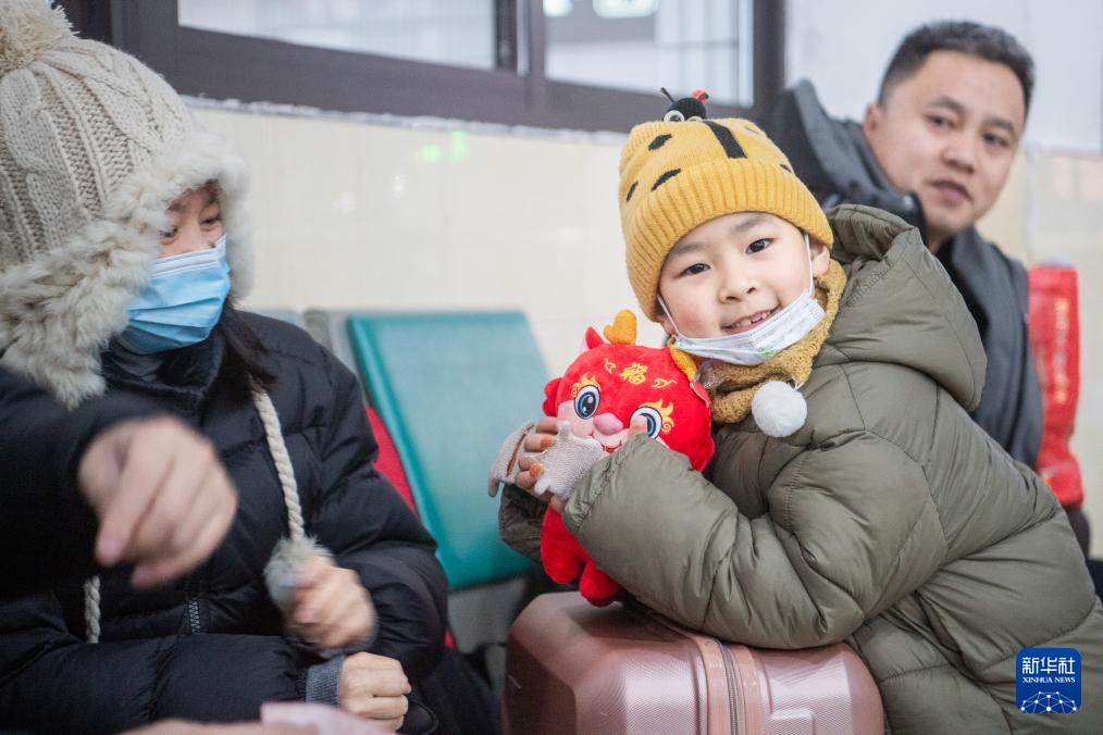 2月1日,一名小朋友在麻城站候车。新华社记者 伍志尊 摄