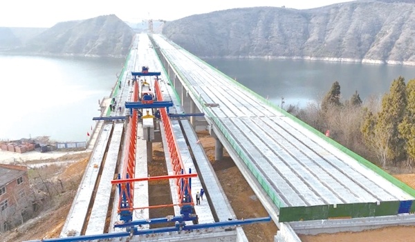 该桥是玄岳大道郧阳区段关键性控制工程,桥梁全长610.5米,共设12个桥墩,双向六车道。玄岳大道贯通后,郧阳区到武当山玄岳门的行车时间将由原来的一个半小时缩短为半个小时。图/记者何利宋楚玉