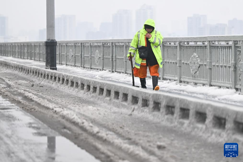 近日,湖北多地迎来雨雪低温天气,环卫、交管、热力、电力等多部门工作人员坚守工作岗位,守护群众过冬安全。