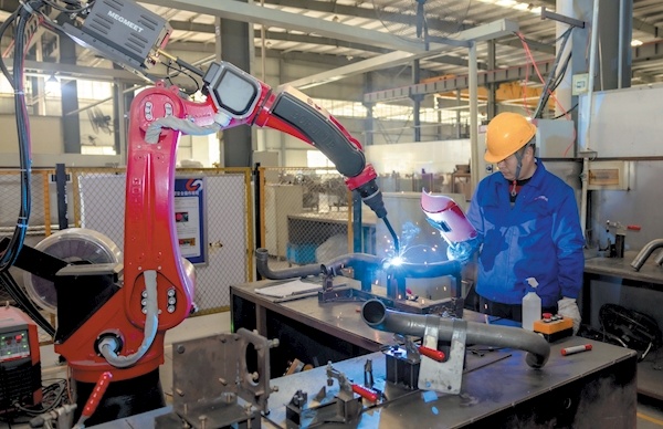 2月3日,湖北万联达汽车科技股份有限公司技术人员查看电焊机器人作业情况。该公司位于十堰经济技术开发区龙门工业园,是一家专业生产汽车散热器、中冷器等产品的国家级专精特新“小巨人”企业。目前,公司订单已排到3月份,预计一季度可实现产值6000万元。记者潘世新特约记者刘爱理摄