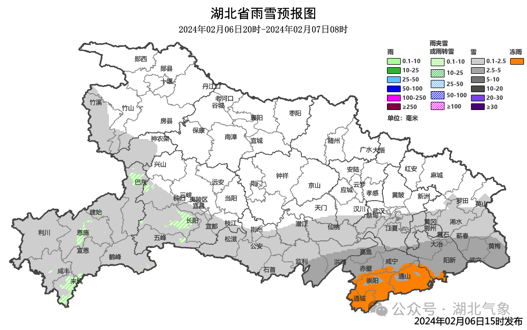 今晚(6日晚)至明天(7日),我省低温雨雪冰冻天气持续,南部小到中雪、鄂东南局部有大雪和冻雨,北部小雪转阴天。