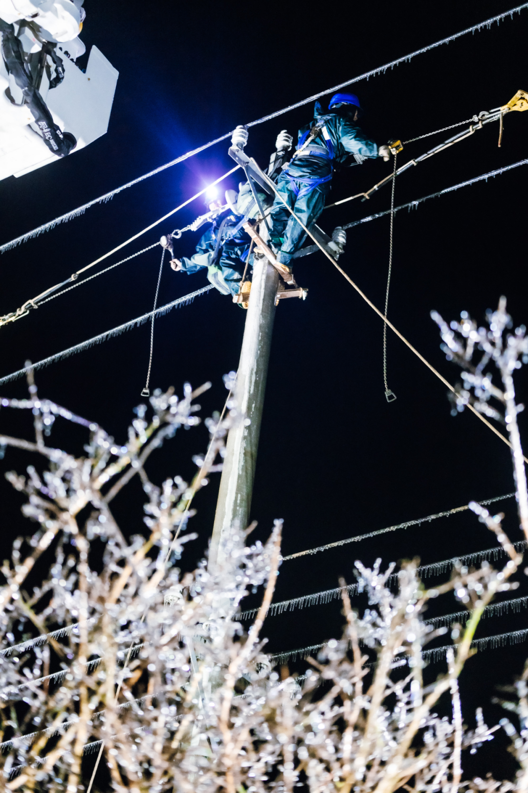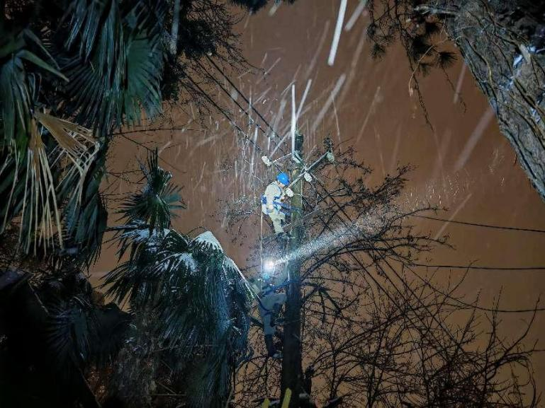 (图源|网络) 武汉供电职工冻雨寒夜高空作业,两天两夜持续抢险。