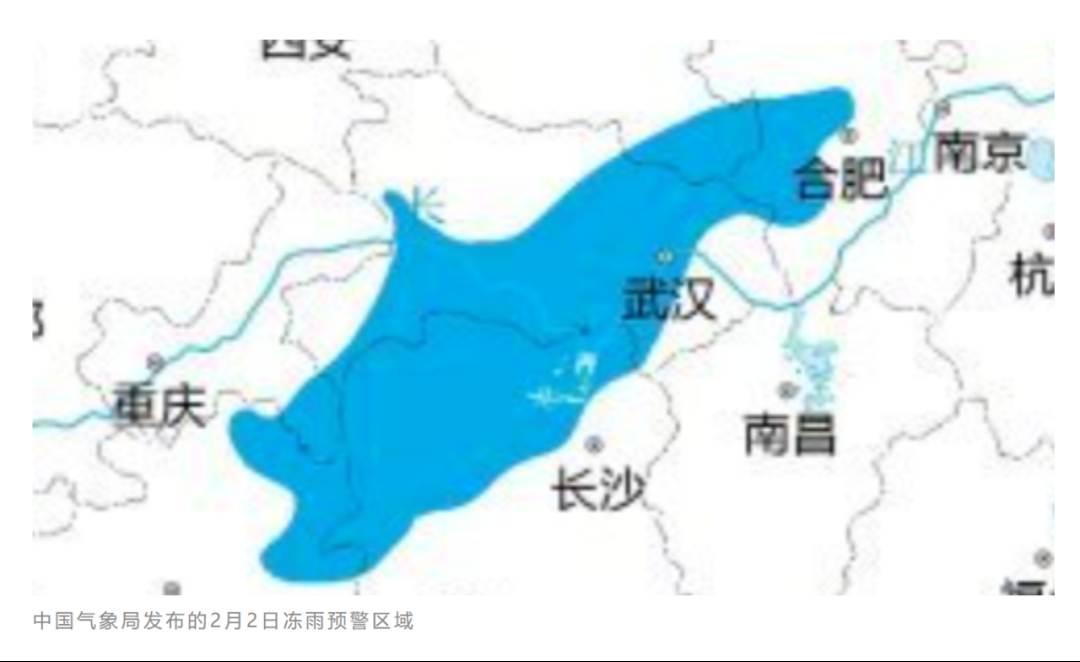 “据气象部门最新预警,2月3日白天武汉有冻雨或冰粒并伴有雷电,晚上有雨夹雪转大到暴雪,4日气温会降至-4℃,路面易结冰(摘自湖北日报)”。