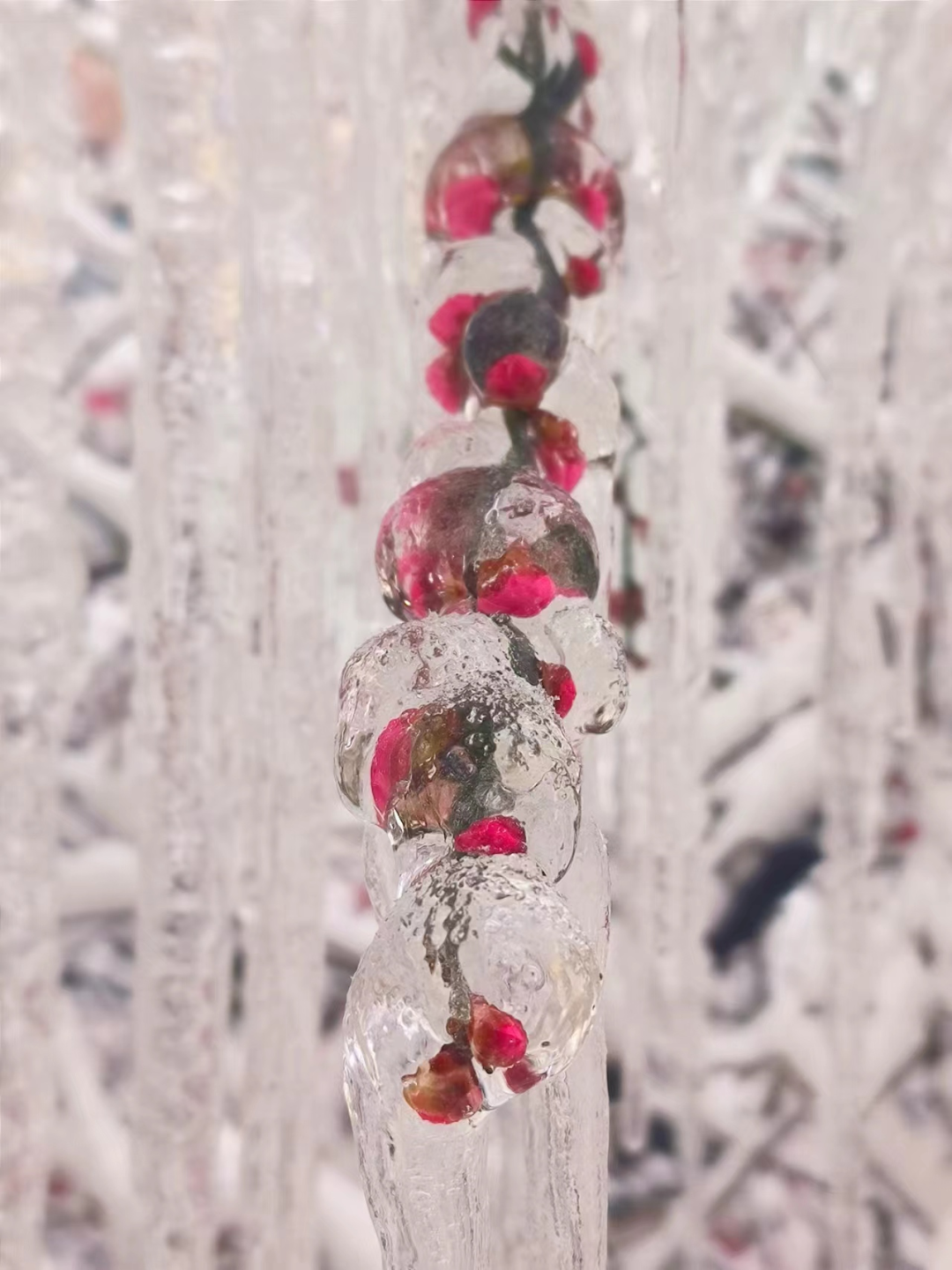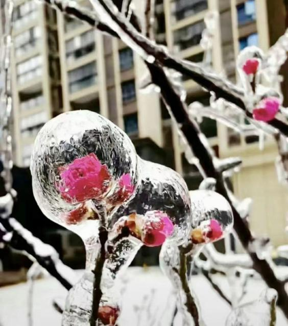 冻雨下冰的湖北,每天都有无数风雪夜归人。水晶花儿美,水晶花开刀锋般严寒的花。风雪冰凌里凡人英雄,开刀锋般勇敢者之花。