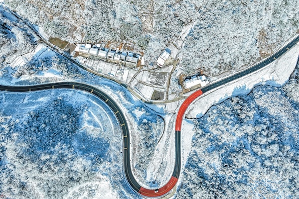 2月4日,在竹山县深河乡秦家村,白雪装扮的村庄与畅通的通村公路构成一幅美丽的雪景图。此轮降雪以来,竹山县组织人员和清雪车辆对辖区道路及时进行清雪除冰,确保道路通畅,全力以赴降低雨雪冰冻天气对群众生产生活的影响。