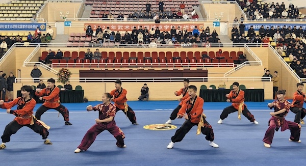 2月3日,2023年武术进校园试点学校交流赛在武当山国际武术交流中心开幕。本次交流赛为期4天,由国家体育总局武术运动管理中心主办,来自上海、湖北、重庆、河南、广东、云南、福建等7个试点省市69所学校的350名运动员参加比赛。比赛设置个人项目和集体项目两大类,涵盖长拳、南拳、太极拳和地方特色拳种。记者张婧特约记者徐刚通讯员王高菲摄