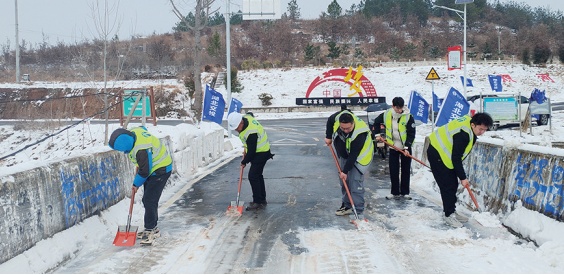 2月5日上午,湖北交投汉都矿业开发有限公司紧急调度2台装载机、3吨融雪剂等设备物资,组织干部职工联合曾都区万店镇政府及双河村、高庙村干部群众,奔赴240国道转向双河村和高庙村道路现场全力开展融雪除冰工作。经过近6个小时的除雪奋战后双向道路恢复通畅,为当地群众平安出行贡献了一份力量。(随州日报全媒记者徐斌摄)