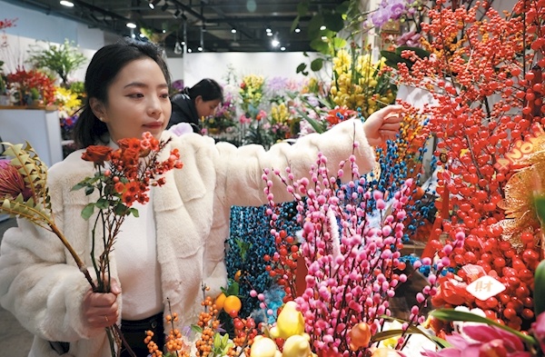 市民在北京路花店选购鲜花装扮新年。记者刘旻摄
