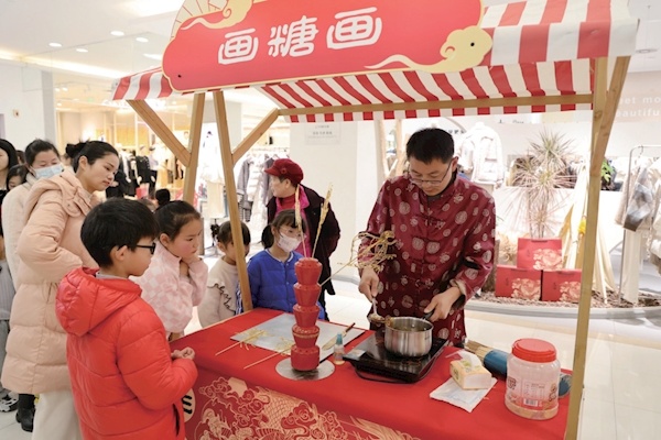 武商十堰人民商场举行新春游园会活动,邀请民间艺人做糖画。记者全正摄