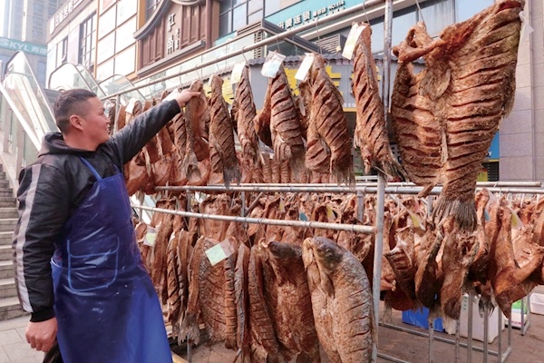 阳光栖谷农贸市场腊鱼飘香。记者张婧摄