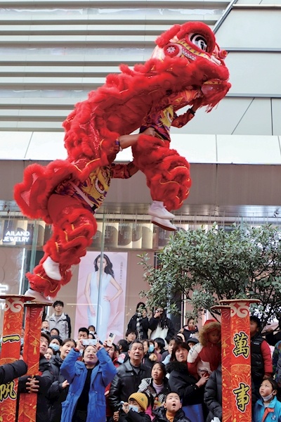 在鄂西北小商品批发市场,各具特色的龙年主题春联、可爱的龙玩具一路走红,红火的“生肖经济”激活新年消费市场。在五堰步行街,身着彩色霞帔的醒狮时而腾跃、时而翻滚、时而嬉戏,动作神态惟妙惟肖,为一年一度的新春佳节增添欢乐气氛。武商十堰人民商场举行新春游园会活动,邀请做糖画、捏面人、演皮影戏等民间艺人现场表演,为市民带来文化盛宴。