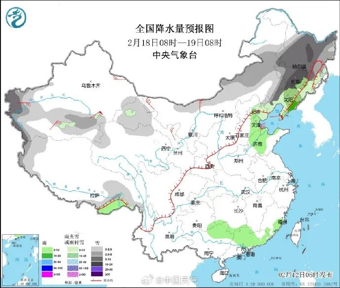 不过假期结束后随着寒潮南下,中东部雨雪将发展增多,19-20日,黄淮、江淮、江汉有雨转雨夹雪或雪,长江中下游以南有小到中雨,局地大雨;黄淮、江淮、湖南、贵州局地有冻雨。