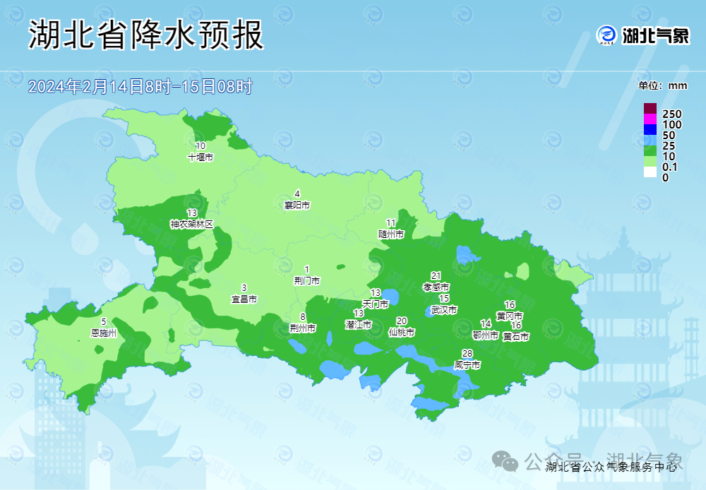 明天,鄂西南和我省东部地区会由多云转为小到中雨,局部大雨。省内其他地区会由多云转为小雨。夜间鄂西北高海拔地区有雨夹雪或小雪。