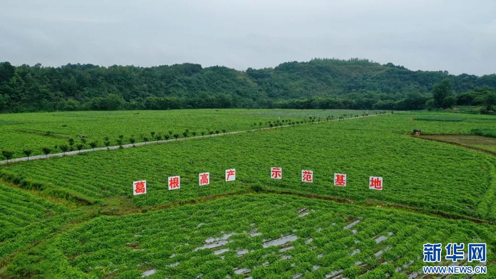 卸甲坪土家族乡建成的葛根高产示范基地。新华网发 张戈摄