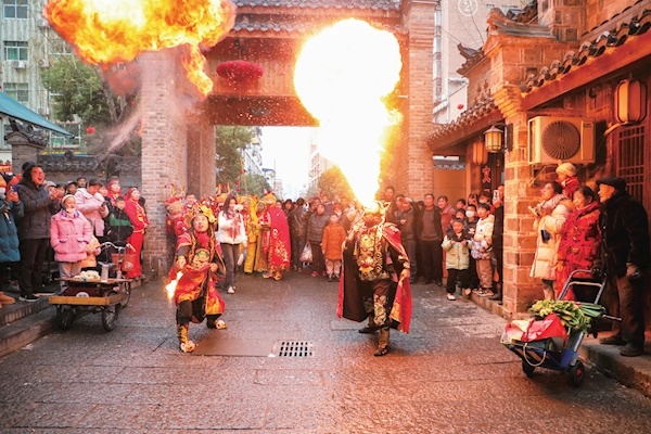 ②2月16日,武当山非遗庙会在大岳武当城精彩上演。记者全正摄