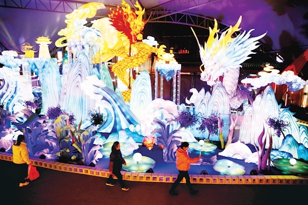 ⑦2月13日,游客在武当不夜城赏花灯。特约记者曹忠宏摄