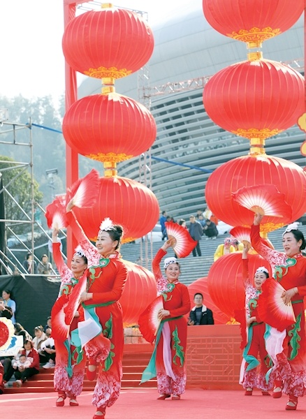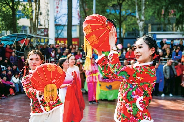 ⑤2月13日,市人民广场上,精彩的舞蹈表演点燃春节喜庆氛围。通讯员程传泽摄