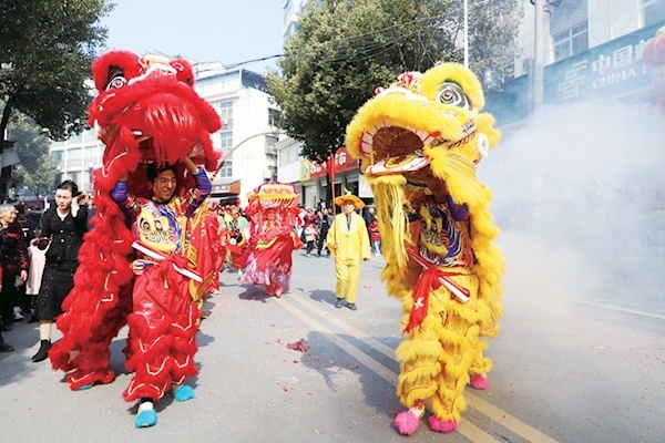 2月14日,农历正月初五,竹山县麻家渡镇举行“金龙迎春到,福满麻家渡”2024年春节巡游纳福活动,舞龙、舞狮、秧歌等节目精彩纷呈,赢得群众阵阵喝彩声。通讯员刘东陈伟摄