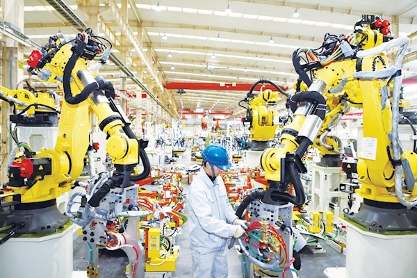2月18日,在东风设备制造有限公司生产车间,工人正对新能源车身焊接设备进行调试。该公司在张湾区的大力支持下通过入园转型,建成数字化研发生产平台,新增高端设备113台(套),有效提升高端化装备制造能力,成为国内一流数智化工厂。该公司预计一季度可完成产值4.5亿元,同比增长51%。