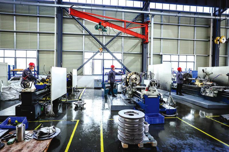 2月18日,正月初九,曾都经济开发区湖北琅菱智能装备有限公司工人们正在忙着组装直驱电机纳米砂磨机。(随州日报全媒记者李文军摄)
