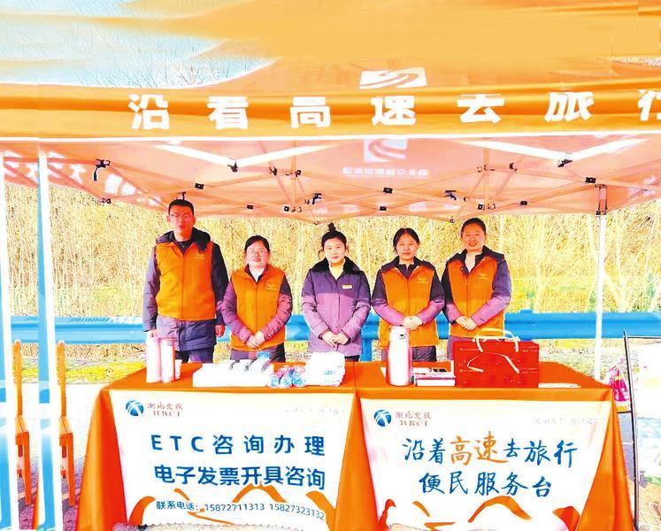 为更好地服务司乘人员出行,全面加快ETC推广发行工作,随州邮储银行在随州南高速出口搭建ETC办理服务点,让广大司乘体验“下一次道办两件事”的“一站式”VIP服务,实现“即办、即装、即走、零等待”。 (随州日报通讯员储洋摄)
